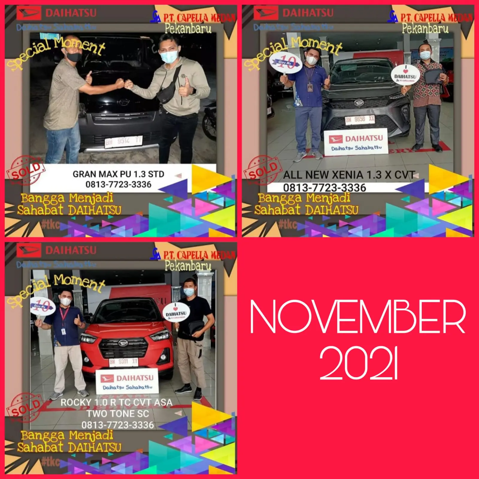 Saya juga telah mendapatkan penghargaan sebagai Daihatsu Adviser terbaik 3 kali berturut-turut atas pencapaian penjualan terbaik se indonesia dan layanan konsumen terbaik di Indonesia.